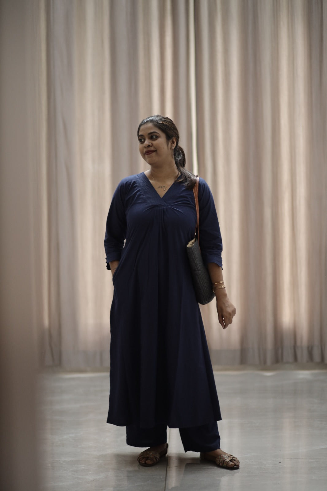 Morning traffic, office meetings, errands, evening catch-ups — this sustainable blue cotton kurti-and-pant set has your back! Light, breathable, and totally hassle-free, it keeps you comfy without killing your style.